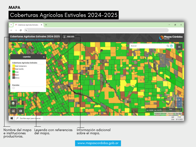 El mapa de Coberturas Agrícolas Estivales 2024–2025 forma parte de un trabajo que la Provincia de Córdoba viene desarrollando desde la campaña 2017–2018.