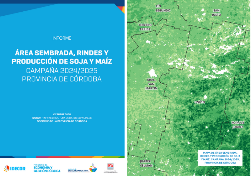 Imagen 2. Informe ‘Área sembrada, rindes y producción de soja y maíz, campaña 2024/2025, provincia de Córdoba’.