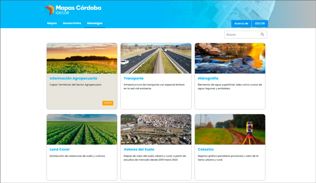 A través de Mapas Córdoba, IDECOR pone a disposición para su descarga, datos geográficos de alta calidad producidos por organismos públicos nacionales y provinciales, gobiernos locales, instituciones científicas y académicas, organizaciones de la sociedad civil, empresas y por la propia IDE.