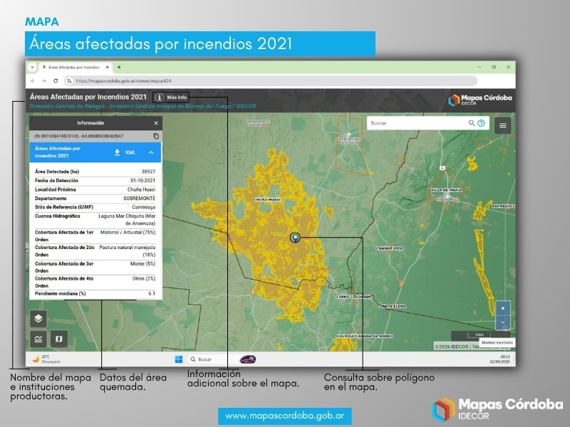 Los datos se encuentran disponibles en el Mapa de Áreas afectadas por incendios 2021, que se suma a las ediciones de 2022, 2023, 2024 y 2025.