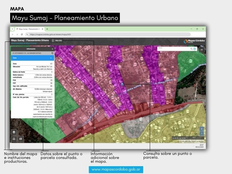 La Comuna de Mayu Sumaj, con el apoyo de IDECOR, pone en línea un mapa con información clave sobre su normativa urbana.